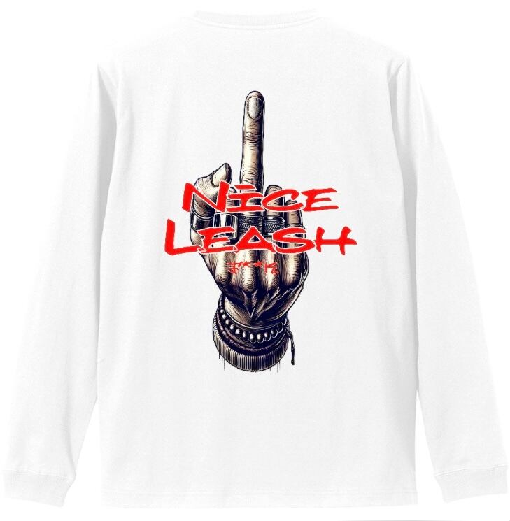 •背面の中指イラスト: 反抗心を象徴する中指を立てたイラストが背中に大きく描かれており、視覚的なインパクトとメッセージ性を強調します。目を引くデザインが、着る人の意思を代弁します。